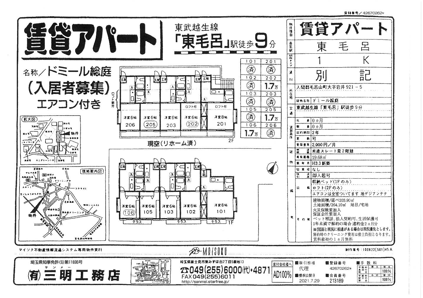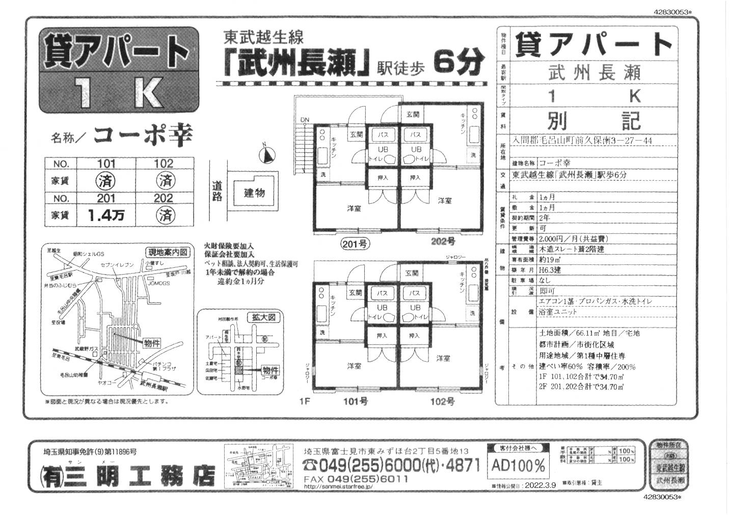 最寄駅:東武越生線「武州長瀬駅」徒歩6分 |