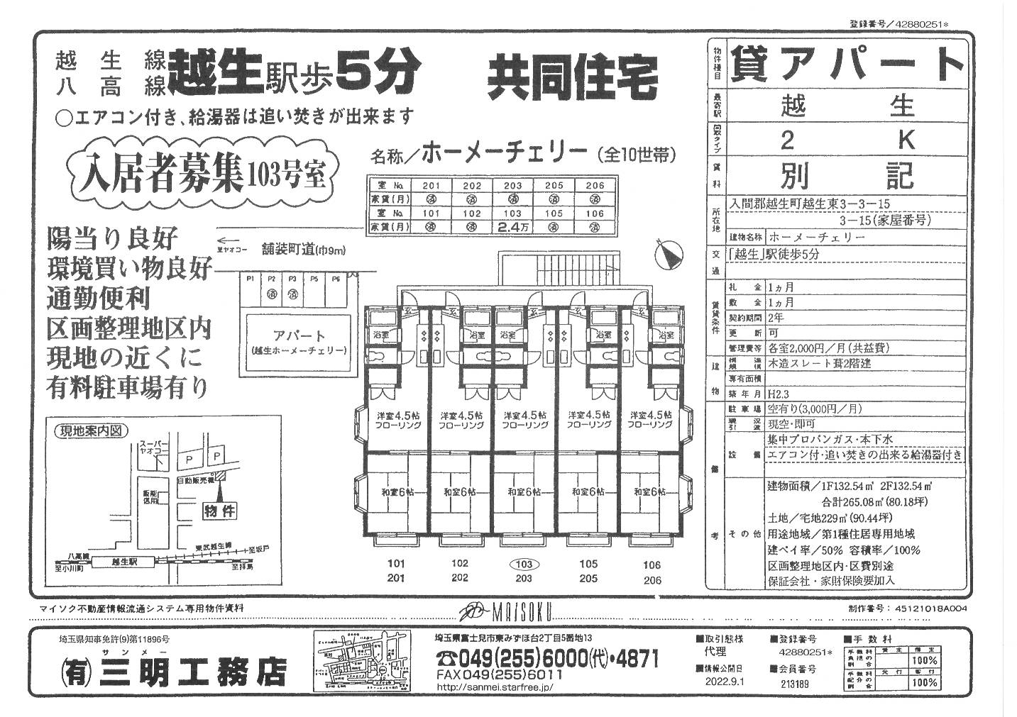 最寄駅:東武越生線「東毛呂駅」徒歩9分 |