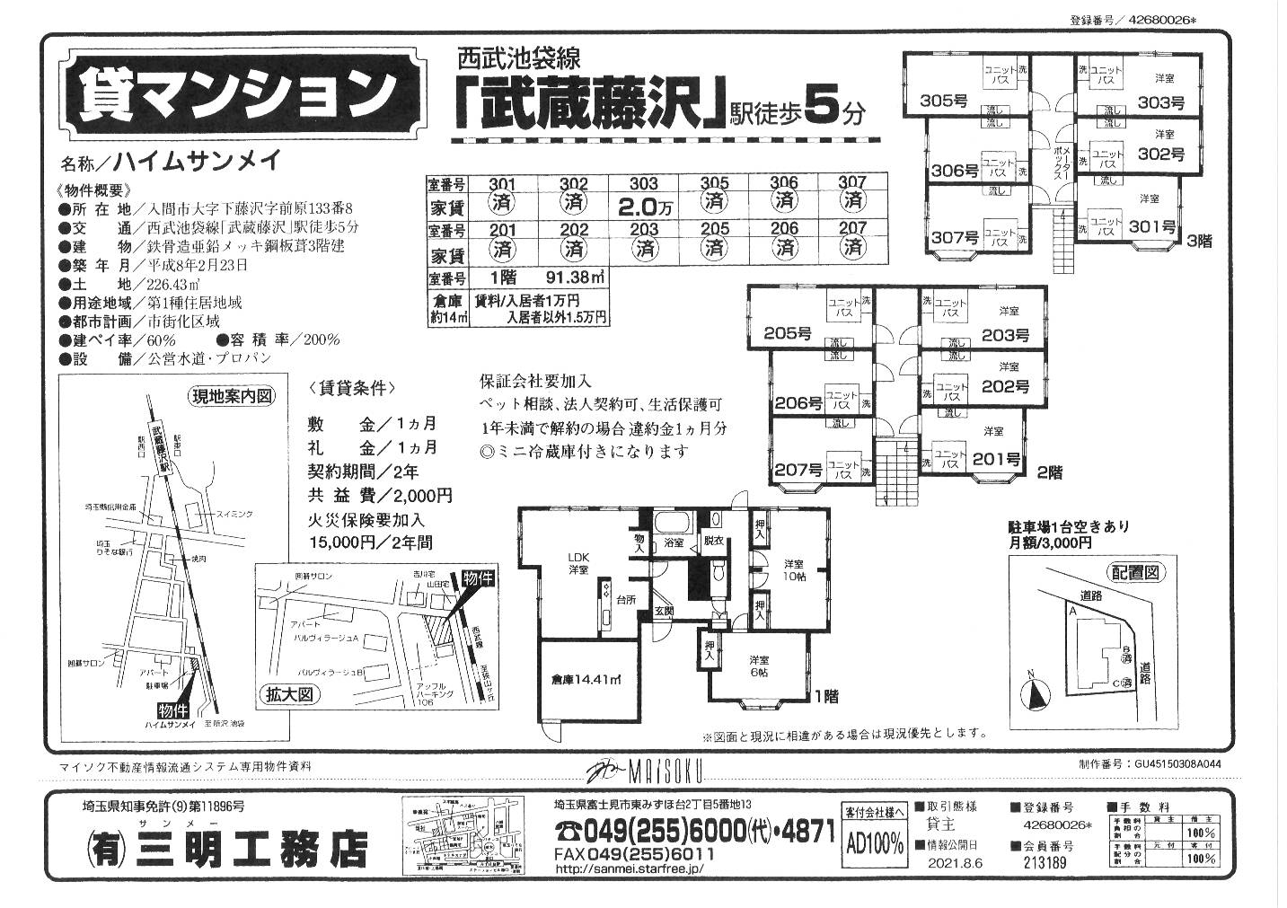 最寄駅:西武池袋線「武蔵藤沢駅」徒歩5分 |